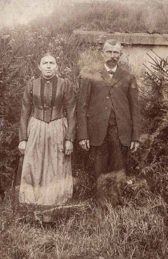 Der Landwirt Albert Jonner (ca. 1873-1926) lässt sich zusammen mit seiner Ehefrau Katharina Jonner (geb. Thoma, 1875-1955) fotografieren. Die beiden stehen nebeneinander im Freien, ernst und aufrecht, wie es für solche Aufnahmen der Zeit typisch ist. Vermutlich ist das Foto in der Nähe ihres Anwesens am Alenberg entstanden.