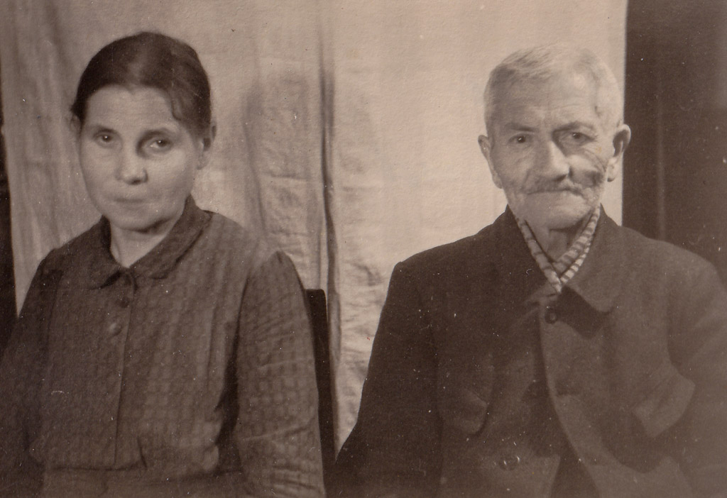 Zwei Menschen sitzen nebeneinander, vor einem schlichten Vorhang, ohne jedes dekorative Beiwerk. Der Blick ist ernst. Es ist eines der wenigen Porträts von Buchbindermeister Anton Rebholz (1875-1946) – einem Mann, der sein Leben lang meist hinter der Kamera stand. Links sitzt seine Ehefrau Wilhelmine Rebholz (geb. Kaiser, 1880-1966).
