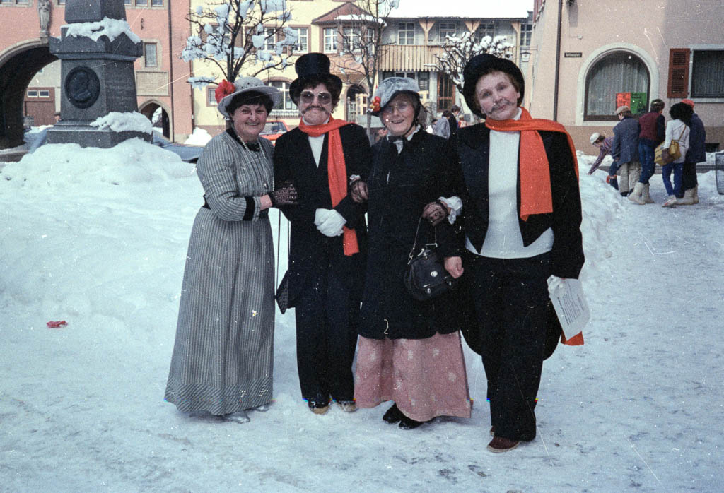 Närrinnengruppe auf dem unteren Rathausplatz, Fasnacht 1983