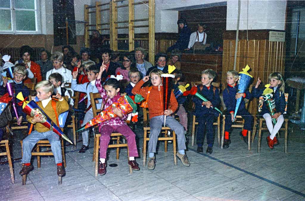 In der Turnhalle herrscht geschäftiges Treiben: Die neuen Erstklässler*innen haben ihren großen Tag. Aufgeregt, stolz – und manche auch ein bisschen eingeschüchtert – sitzen sie auf den Bänken und halten ihre bunt geschmückten Schultüten fest umklammert. Hinter ihnen nehmen Eltern und Geschwister Platz. Auffällig ist: Mütter und Geschwister sind zahlreich vertreten, Väter hingegen sucht man auf den Fotos vergeblich. Wahrscheinlich sind sie arbeiten – und überhaupt gilt die Kindererziehung überwiegend als Aufgabe der Mütter.