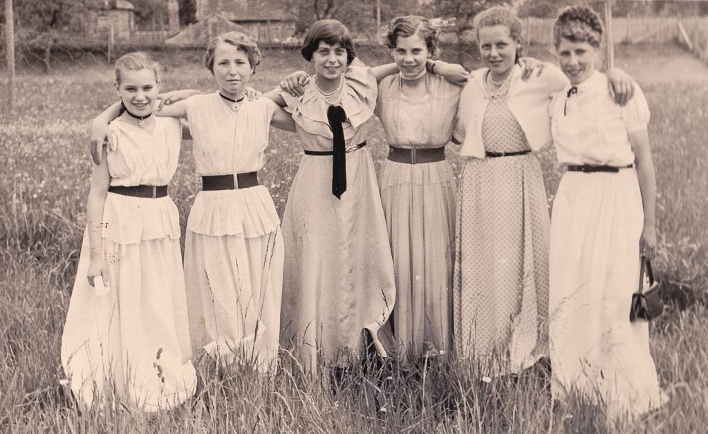 V.l.n.r.: 1 Brunhilde Zahn (1939-1975), 2 Brunhilde Bader (verh. Stockmar, 1938-2006), 3 Veronika Geisinger (verh. Beer), 4 Gisela Fehrenbach (verh. Knöpfle), 5 Inge Hepting (verh. Mayer), 6 Roswitha Kurz (verh. Ehrat)
