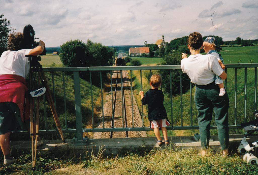 Auf der kleinen Brücke hinter dem Oberwiesenweg haben sich im Sommer 1996 Schaulustige versammelt. Seit dem Bau der Bahnlinie spannt sie sich hier über die Gleise – unscheinbar, aber mit weitem Blick in die Landschaft. Heute ist sie Logenplatz.