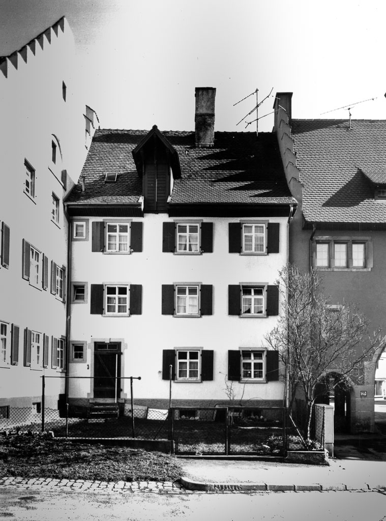 Errichtet wurde das Haus nach dem verheerenden Großbrand von 1921, dem insgesamt 36 Gebäude zum Opfer fielen. Für die Planung des Wiederaufbaus zeichnete der Freiburger Architekt Carl Anton Meckel (1875-1938) verantwortlich. Nach dem Wiederaufbau gehörte das Haus zunächst dem Metzger Wilhelm Werne. 1952 übernahm es Metzgermeister Karl Sibold (1908-?) aus Düsseldorf. Doch wem gehört es zur Zeit dieser Aufnahme Mitte der 1970er Jahre? Wer wohnt hier?