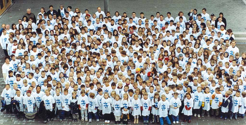 Ein wenig erinnert dieses Foto an eine Szene aus einem Wimmelbuch: Zu sehen sind alle Schüler*innen und Lehrer*innen der Grund- und Hauptschule sowie der neu gegründeten Werkrealschule. Hunderte stehen eng zusammengedrängt auf dem Schulhof, alle tragen das gleiche weiße T-Shirt mit blauem Aufdruck: »GHWRS Löffingen«. Klassenfotos gehören in Löffingen seit über 100 Jahren zur Tradition – die ältesten Aufnahmen stammen aus den 1890er Jahren, entstanden in Schwarz-Weiß, mit streng in Reih’ und Glied sitzenden und stehenden Kindern, die ernst in die Kamera blicken. Ein einziges Foto aber, auf dem wirklich alle Schüler*innen zu sehen sind – das ist neu.