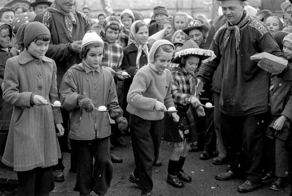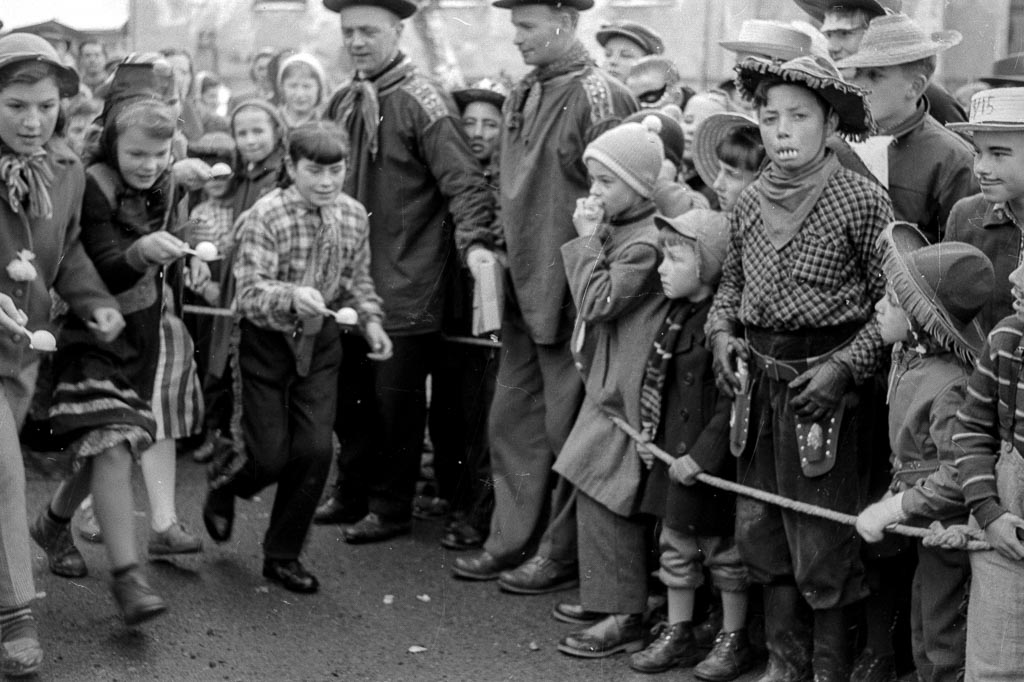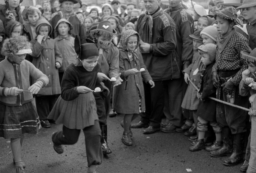 Der »Fasnet Zieschdig« gehört traditionell den kleinen Närrinnen und Narren. Nachdem der Kinderumzug vorüber ist, verlagert sich das Geschehen in die Kirchstraße, wo die »Laternenbrüder« eine Reihe von Spielen organisieren. Besonders beliebt: das Eierlaufen. Zwischen dicht gedrängten Zuschauer*innen treten die Kinder an, viele von ihnen kostümiert – mal im Wintermantel, mal als Pilz, »Chinesin« oder Cowboy. Die »Laternenbrüder« achten darauf, dass die Absperrung hält und niemand auf die Fahrbahn drängt. Schließlich brauchen die Eierläufer*innen genügend Raum, um ihre fragile Fracht zu balancieren.